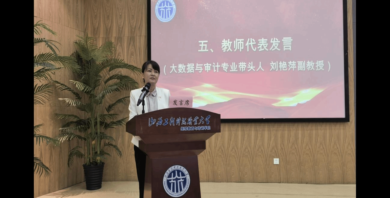大数据与审计专业带头人刘艳萍副教授代表全体教师发言。她以专业教师的视角,生动阐述了大数据与会计、大数据与审计专业的独特优势和广阔发展前景。她指出,在数字经济蓬勃发展的时代背景下,会计、审计专业的深度融合为学生提供了前所未有的发展机遇。她鼓励新生们尽快适应大学学习节奏,既要深入掌握专业理论知识,又要注重实践能力的锤炼,同时树立终身学习的理念,以主动适应行业变革的需求。