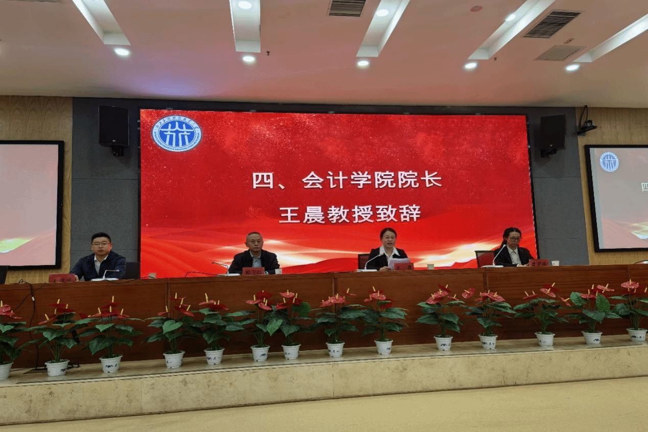 下午三时整,典礼在雄壮的国歌声中正式拉开序幕。仪式上会计学院王 晨教授致辞。她代表学院向来自五湖四海的新同学们表达了最诚挚的欢迎,并详细介绍了学院的发展历程、鲜明的办学特色以及完善的人才培养体系。她强调,学院在学科建设、师资队伍、实训条件等方面均取得了显著成就,同时寄语新生要珍惜大学时光,扎实打好专业基础,积极培养创新思维,为未来的职业生涯奠定坚实基础。