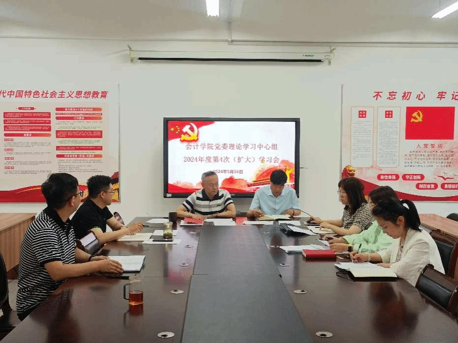 2024年5月16日上午,会计学院召开党委理论学习中心组(扩大)会议,院党委书记郭卫红主持,全体党委委员、各党支部书记参加会议。