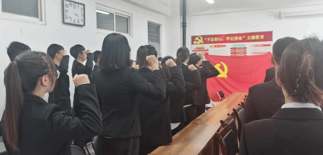 6月27日下午,会计学院党委在八号教学楼二层会议室举行2023年上半年新发展预备党员入党宣誓仪式。会计学院党委第一负责人郭卫红、党委第二负责人王虎威、学生第一党支部书记张竹锦、学生第二党支部书记李晓丹、学生第三党支部书记张变花、党团办负责人毛伟、党委组织员刘晶,以及2023年上半年新发展50名新党员参加宣誓仪式。宣誓仪式由刘晶同志主持。