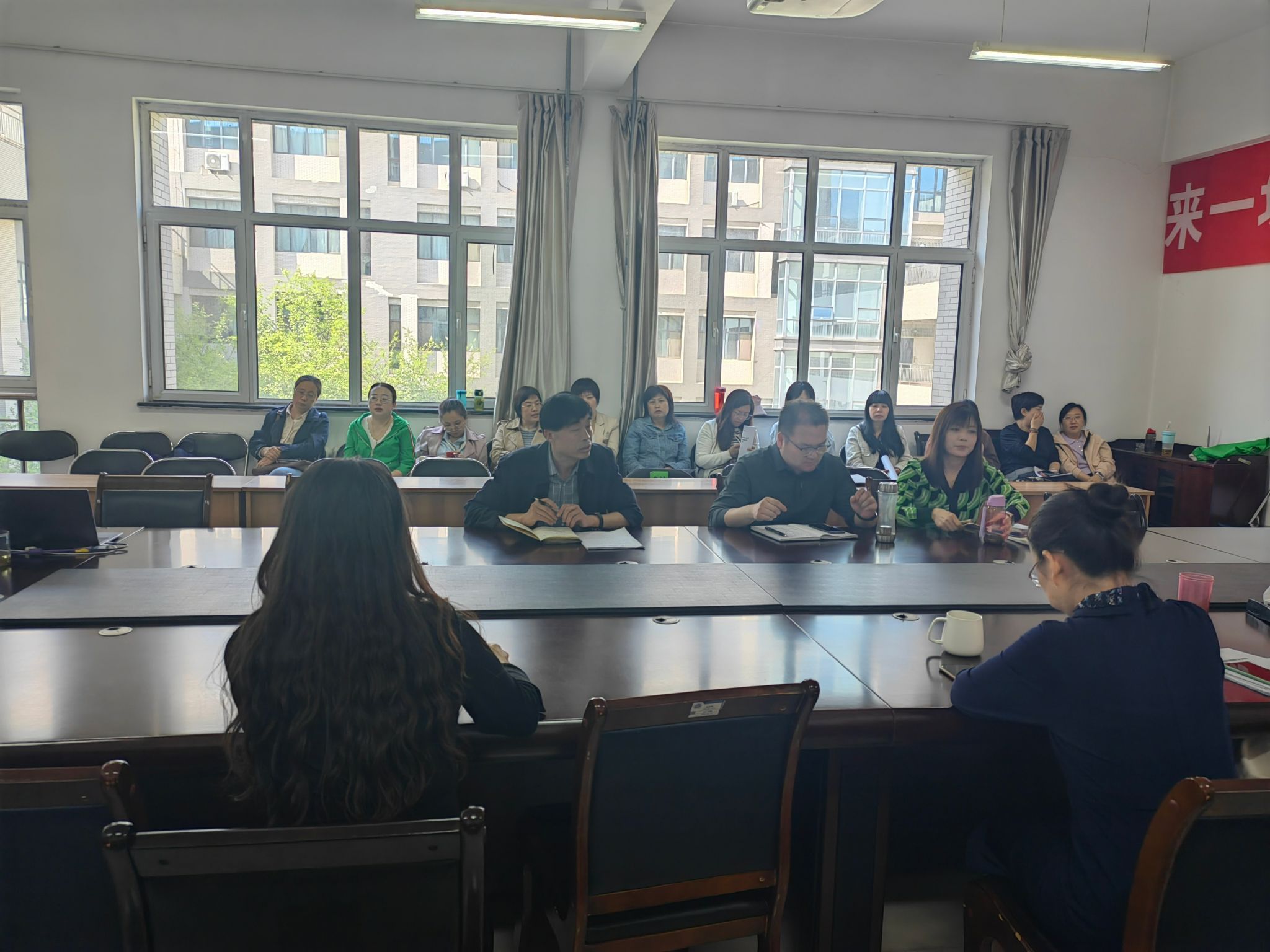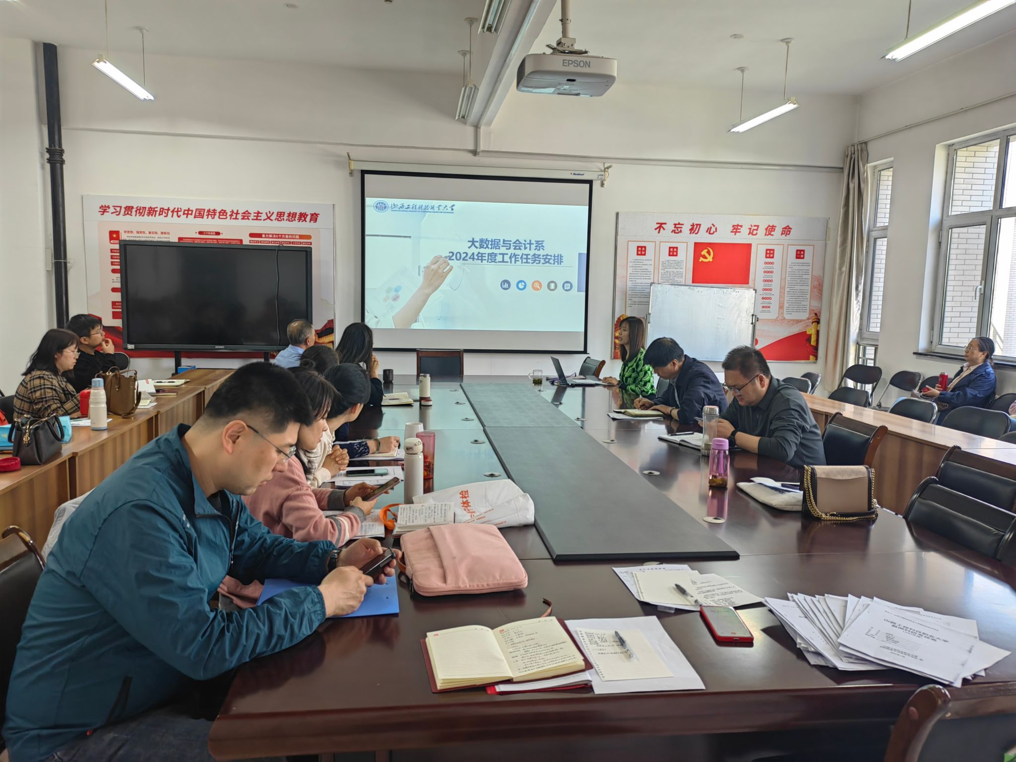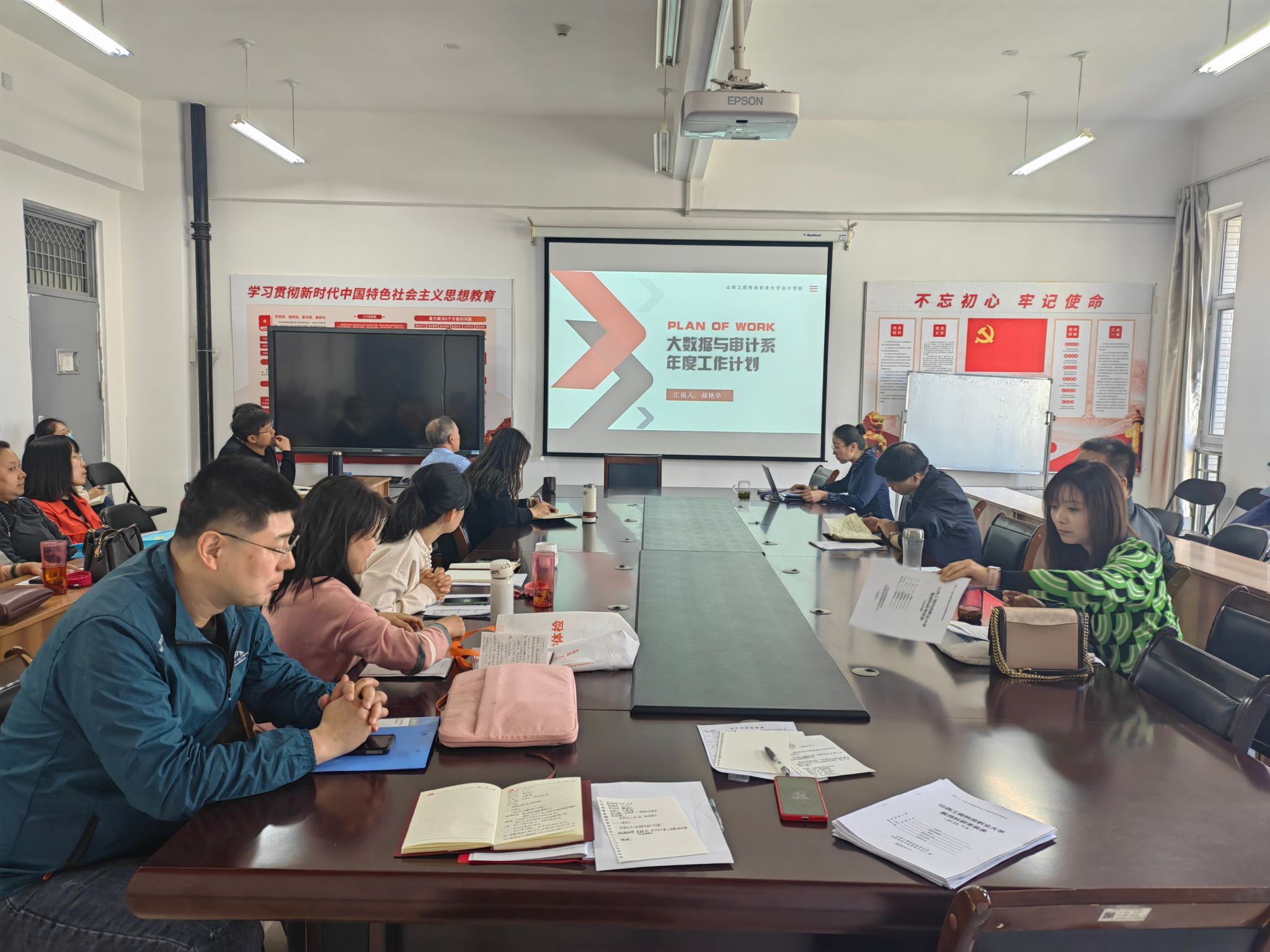 为进一步提升会计学院办学质量,提升教师的凝聚力,全院教师共同努力培养符合新时代要求的高层次技术技能人才,会计学院于2024年4月26日在8号教学楼会议室召开2024年度工作任务汇报会。会议由会计学院教学行政第二负责人(主持工作)王辛平主持。会计学院党委书记郭卫红和全体教师参加了本次汇报会。