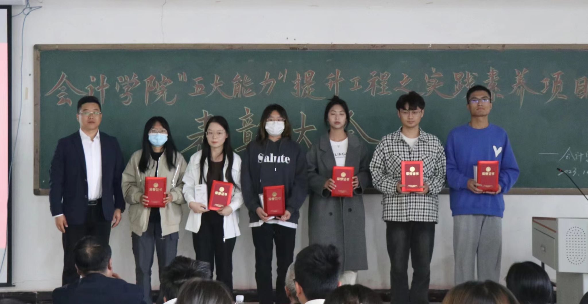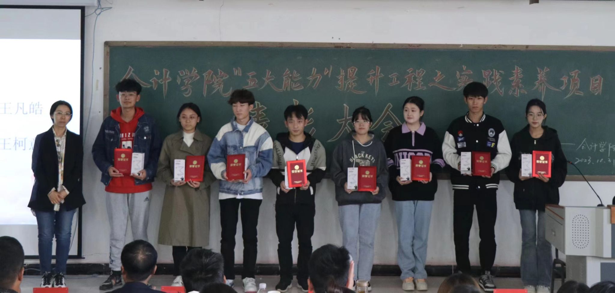 2023年10月31日下午,会计学院举办了“五大能力”提升工程之实践素养项目表彰大会。会计学院党委书记郭卫红,党委第二负责人、教学行政第二负责人(主持工作)王辛平,副院长曹宇波,党委第二负责人(专职)王虎威,团委负责人杜娟出席本次表彰大会并担任颁奖嘉宾。会计学院各年级学生代表150余人参加了大会。